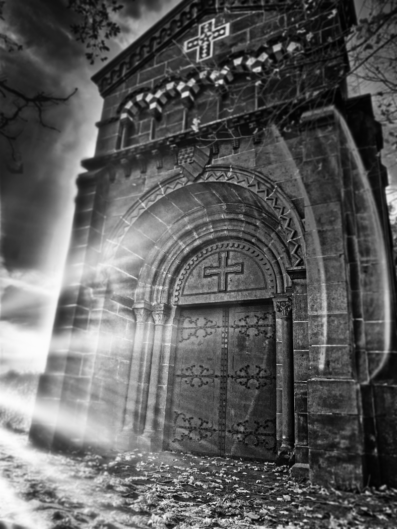 Dans la croyance populaire, ce n’est pas pour ensevelir les morts, mais pour veiller sur les vivants que cette chapelle aurait été conçue. Elle serait une source de lumière dans les ténèbres, ou « Ein licht, um die dunkelheit zu vertreiben » comme on en retrouve, parait-il, la référence dans le sinistre ouvrage « Ein Bollwerk gegen die Dunkelheit. » Dans ce livre, on peut lire une étrange légende. Bien avant l’exploitation des mines de Pontmalduit, des chercheurs auraient essayé de découvrir et d’extraire des métaux rares. Ils auraient creusé tellement profond qu’ils seraient parvenus à ouvrir un passage donnant sur l’enfer. Le gardien du domaine, Malek, leur aurait permis de repartir à condition qu’ils lui offrent un accès caché vers la société des vivants. Les prospecteurs auraient alors négocié leur vie en échange de la fabrication d’un portail, placé au sommet de la petite butte granitique, où se trouve aujourd’hui la chapelle. Quelques années plus tard, un prêtre, sans doute le père Agostinus, s’aperçut que le malin utilisait ce lieu pour se rendre dans le monde des mortels. Il aurait rapporté ceci à l’évêque de Mende, Gabriel-Florent de Choiseul-Beaupré. Ce dernier lui aurait ordonné la construction d’un édifice religieux permettant de sceller le passage vers les ténèbres. En découvrant cela, Malek serait entré dans une rage telle que sa colère aurait liquéfié les roches alentour, créant les mines de plomb de Pontmalduit.